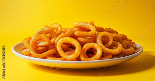 A plate of golden curly fries sits temptingly on a table. The crisp spirals glisten under soft lighting, creating a mouthwatering display of this beloved comfort food.