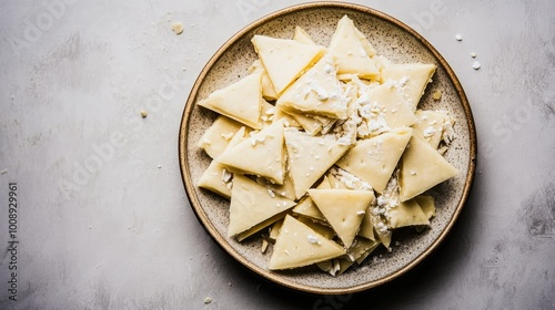 A plate of kaju katli, positioned on a simple background, creating an inviting area for text overlay or branding messages.