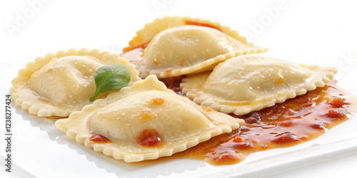 A Plate of Ravioli Pasta Isolated on a White Background, Ideal for Culinary Displays