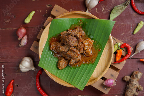 A Plate of Rendang Food. Famous food from Minangkabau Indonesia.