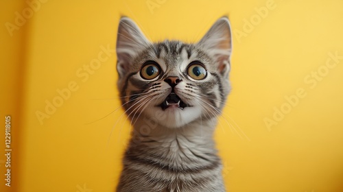 A playful cat with big, bright eyes shows a moment of surprise in a still image, radiating charm and cuteness
