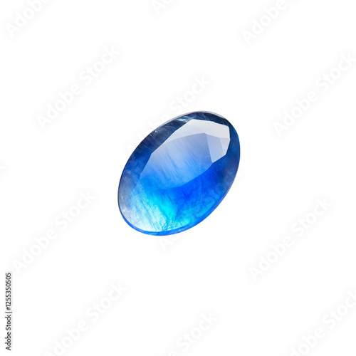 A polished blue gemstone with a smooth surface and a reflective shine, Isolated on white background.