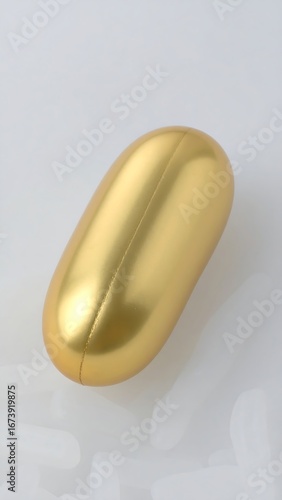 A polished, gold-colored, elongated object sits against a plain white backdrop.