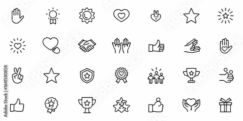 A polished set of icons highlighting gratitude, appreciation, and recognition gestures. Suitable for corporate rewards, thank you cards, and employee appreciation events