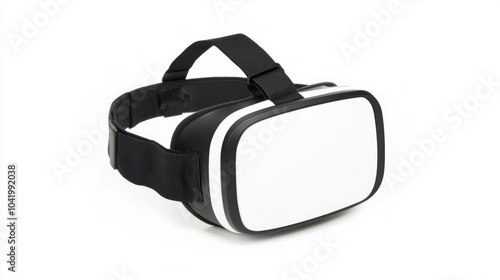 A portable VR headset, isolated on white, with adjustable straps and a smooth, modern finish