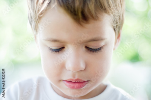 a portrait of a boy thinking, shallow DOF