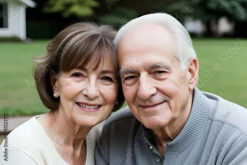 a portrait of a happy white, caucasian, senior, elderly, married couple, in love