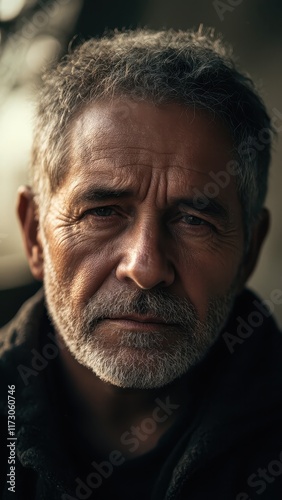 a portrait of a man in his 60s, with a serious expression and a realistic appearance
