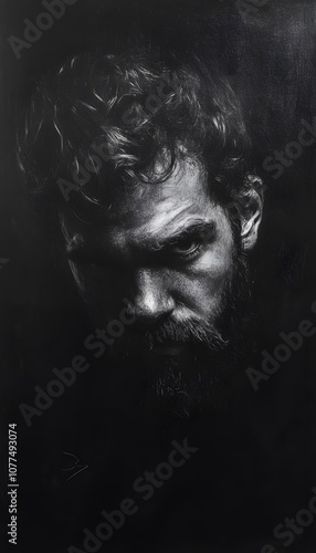 A portrait of a man with a distinctive beard face in black and white