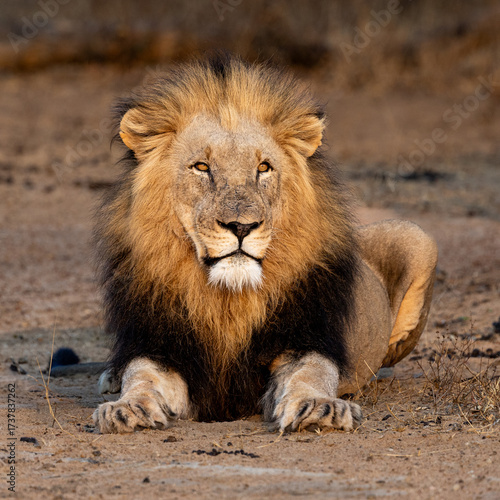 a portrait of a massive male lion
