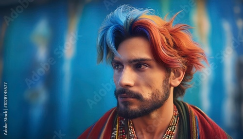 A portrait of a person with an unusual hairstyle, hair color, or facial hair, emphasizing their individuality.