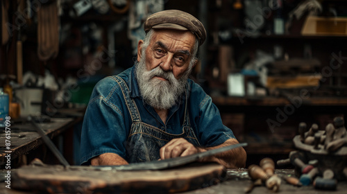 A portrait of a skilled artisan in their workshop, surrounded by tools and materials, meticulously crafting a piece that reflects their craftsmanship and passiongs
