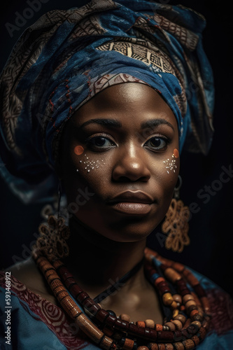 A portrait of a Yoruba woman wearing traditional clothing