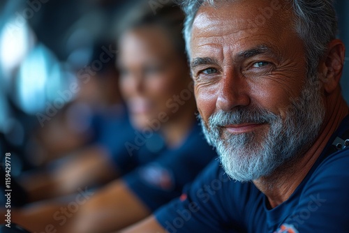 A portrait of an elderly man exercising at the gym, representing the concept of fitness and a healthy lifestyle for seniors.