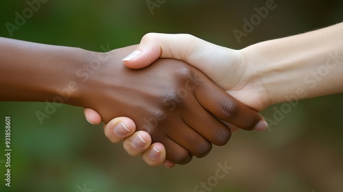 A powerful handshake between individuals of different ethnicities, genders, and ages, signifying partnership and social equality