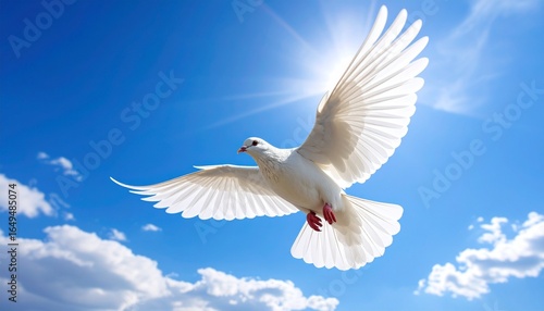 A prayer for peace: a white dove flying in a blue sky