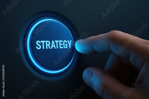 A presses a glowing blue button symbolizing strategy reflecting decision-making and innovation in business growth and leadership