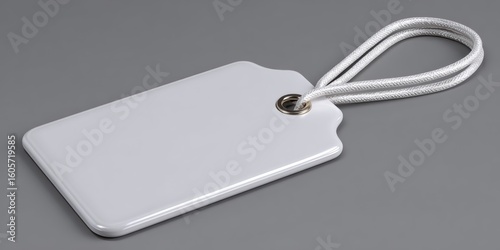 A pristine blank luggage tag, simple and clean, against a neutral backdrop, ready for personalization and showcasing a travel theme.