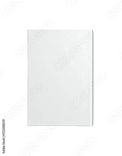 A pristine, blank, white hardcover book stands upright against a transparent background, showcasing its clean, unblemished cover and spine