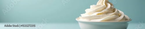 A pristine bowl overflowing with fluffy whipped cream , texture, close-up, cream