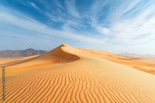 A pristine white sand dune stretching as far as the horizon, the wind ripples across its surface,