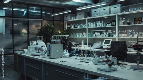 A professional and organized office with a synthetic biology lab and engineered organisms