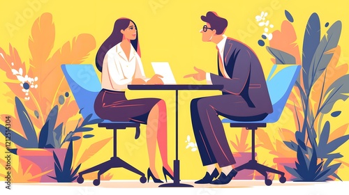 A professional HR manager conducting an interview with a young Latino professional, fostering a collaborative and friendly work environment.