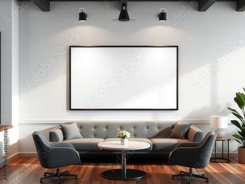 A professional office wall art mockup showcasing a branded design for a presentation, professional, mockup, layout