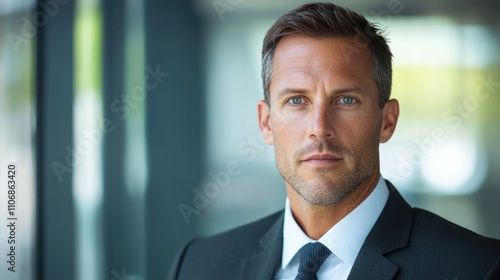 A professional portrait of a man in his 40s in a corporate setting, emphasizing leadership qualities