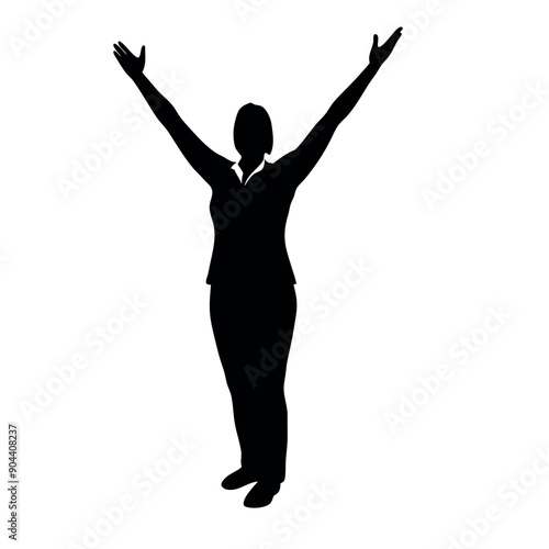 a professional slim business woman doing yoga with expand her two hand up on, vector silhouette, isolated white background