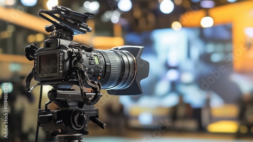 A Professional Video Camera Capturing a Blurred Event