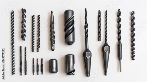 A professional-grade steel drill bit set, neatly arranged on a white background.