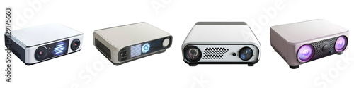 A projector isolated on transparent background, Set of