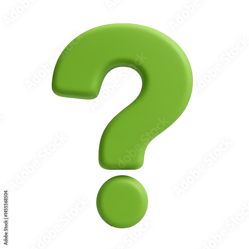 A prominent three dimensional question mark symbol in a cheerful green hue, featuring soft curves and a smooth, matte texture.