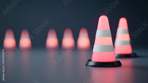 A quarantine zone surrounded by digital barriers, glowing red to indicate danger, Tech-focused, 3D rendering, Realistic, Bright neon accents, High-tech atmosphere