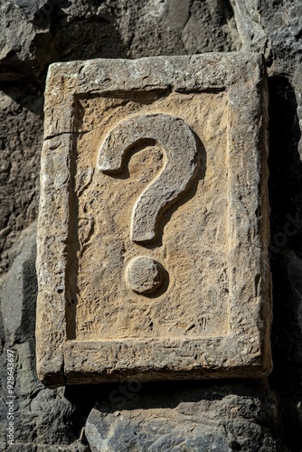 A question mark icon carved into an ancient stone tablet, symbolizing ancient mysteries or lost knowledge.