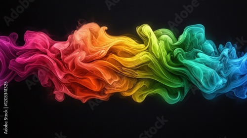 A rainbow colored smoke on a black background