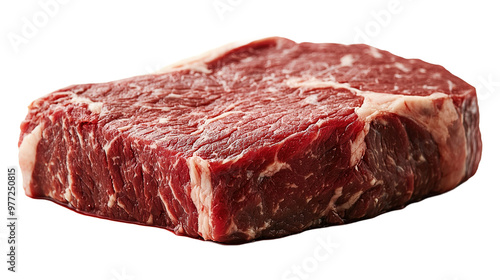 a raw meat steak with rich red color and marbled fat, isolated on a bright transparent background