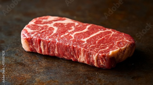 A raw steak showcasing marbling, ready for cooking or grilling.