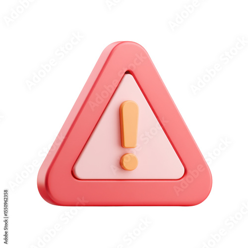 A Realistic 3D Rendering of a Transparent Red Warning Caution Attention Sign Icon with a Soft Orange Exclamation Mark