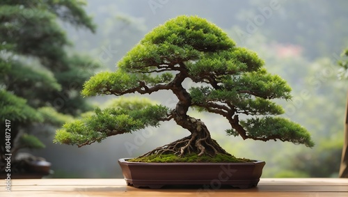 A realistic beautiful bonsai tree in natural garden