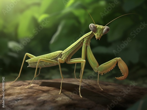 A realistic depiction of a praying mantiss. Generated with AI Technology