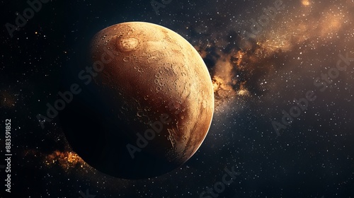 A realistic depiction of a reddish planet set against the backdrop of outer space, highlighting its rugged surface and potential for new exploration and discovery.