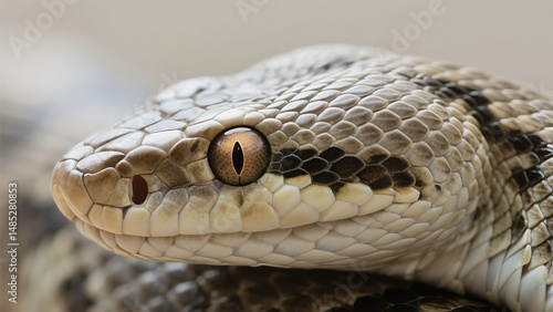 A realistic photo of a snake's head with its textured skin.