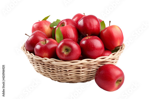 A realistic portrait of red apples in a basket, white background, isolated PNG
