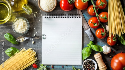 A Recipe Notepad Surrounded By Fresh Italian Ingredients