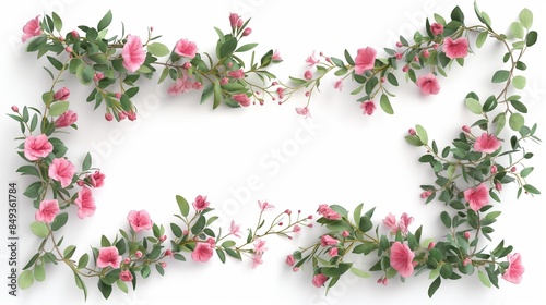 A rectangular frame with oleanders and eucalyptus, space for text, 3D illustration, isolated on white background