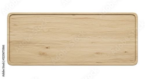 A rectangular wooden signboard with slightly curved edges featuring a light weathered wood texture