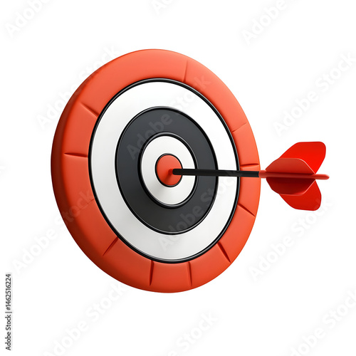 A red and white dartboard with an arrow in the center long title A brightly colored geometric