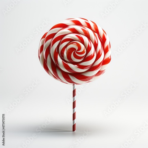 A red and white striped lollipop on a stick, clipart on white background.